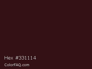 Hex #331114 Color is a very dark red color and the nearest color is Tamarind #341515. Hex code #331114 and RGB value is rgb(51,17,20). In RGB color space, this color is composed of 20% red, 7% green, 8% blue, In CMYK color space, this color is composed of 0% cyan, 67% magenta, 61% yellow , 80% black , In HSL color space, this color has a hue angle of 355° , 50% saturation and 13% lightness.