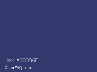 Hex #333b6e Color is a normal blue color and the nearest color is Deep Koamaru #333366. Hex code #333b6e and RGB value is rgb(51,59,110). In RGB color space, this color is composed of 20% red, 23% green, 43% blue, In CMYK color space, this color is composed of 54% cyan, 46% magenta, 0% yellow , 57% black , In HSL color space, this color has a hue angle of 232° , 37% saturation and 32% lightness.