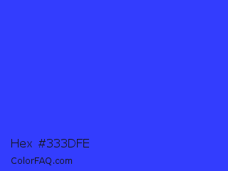 Hex #333dfe Color is a normal blue color and the nearest color is Palatinate Blue #273be2. Hex code #333dfe and RGB value is rgb(51,61,254). In RGB color space, this color is composed of 20% red, 24% green, 100% blue, In CMYK color space, this color is composed of 80% cyan, 76% magenta, 0% yellow , 0% black , In HSL color space, this color has a hue angle of 237° , 99% saturation and 60% lightness.