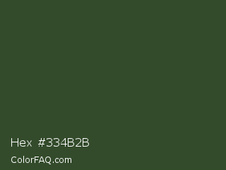 Hex #334b2b Color is a dark green color and the nearest color is Kombu Green #354230. Hex code #334b2b and RGB value is rgb(51,75,43). In RGB color space, this color is composed of 20% red, 29% green, 17% blue, In CMYK color space, this color is composed of 32% cyan, 0% magenta, 43% yellow , 71% black , In HSL color space, this color has a hue angle of 105° , 27% saturation and 23% lightness.