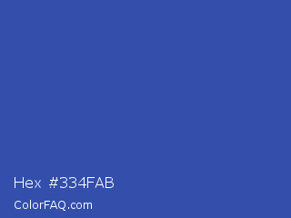 Hex #334fab Color is a normal blue color and the nearest color is Violet Blue #324ab2. Hex code #334fab and RGB value is rgb(51,79,171). In RGB color space, this color is composed of 20% red, 31% green, 67% blue, In CMYK color space, this color is composed of 70% cyan, 54% magenta, 0% yellow , 33% black , In HSL color space, this color has a hue angle of 226° , 54% saturation and 44% lightness.