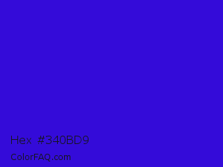 Hex #340bd9 Color is a normal indigo color and the nearest color is Interdimensional Blue #360ccc. Hex code #340bd9 and RGB value is rgb(52,11,217). In RGB color space, this color is composed of 20% red, 4% green, 85% blue, In CMYK color space, this color is composed of 76% cyan, 95% magenta, 0% yellow , 15% black , In HSL color space, this color has a hue angle of 252° , 90% saturation and 45% lightness.