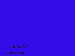 Hex #340be9 Color is a normal indigo color and the nearest color is Electric Ultramarine #3f00ff. Hex code #340be9 and RGB value is rgb(52,11,233). In RGB color space, this color is composed of 20% red, 4% green, 91% blue, In CMYK color space, this color is composed of 78% cyan, 95% magenta, 0% yellow , 9% black , In HSL color space, this color has a hue angle of 251° , 91% saturation and 48% lightness.