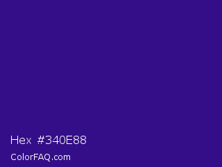 Hex #340e88 Color is a dark indigo color and the nearest color is Pixie Powder #391285. Hex code #340e88 and RGB value is rgb(52,14,136). In RGB color space, this color is composed of 20% red, 5% green, 53% blue, In CMYK color space, this color is composed of 62% cyan, 90% magenta, 0% yellow , 47% black , In HSL color space, this color has a hue angle of 259° , 81% saturation and 29% lightness.