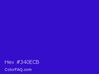 Hex #340ecb Color is a normal indigo color and the nearest color is Interdimensional Blue #360ccc. Hex code #340ecb and RGB value is rgb(52,14,203). In RGB color space, this color is composed of 20% red, 5% green, 80% blue, In CMYK color space, this color is composed of 74% cyan, 93% magenta, 0% yellow , 20% black , In HSL color space, this color has a hue angle of 252° , 87% saturation and 43% lightness.