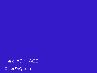Hex #341ac8 Color is a normal indigo color and the nearest color is Interdimensional Blue #360ccc. Hex code #341ac8 and RGB value is rgb(52,26,200). In RGB color space, this color is composed of 20% red, 10% green, 78% blue, In CMYK color space, this color is composed of 74% cyan, 87% magenta, 0% yellow , 22% black , In HSL color space, this color has a hue angle of 249° , 77% saturation and 44% lightness.