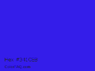 Hex #341ceb Color is a normal indigo color and the nearest color is Bluebonnet #1c1cf0. Hex code #341ceb and RGB value is rgb(52,28,235). In RGB color space, this color is composed of 20% red, 11% green, 92% blue, In CMYK color space, this color is composed of 78% cyan, 88% magenta, 0% yellow , 8% black , In HSL color space, this color has a hue angle of 247° , 84% saturation and 52% lightness.