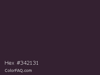 Hex #342131 Color is a very dark magenta color and the nearest color is Bleached Cedar #2c2133. Hex code #342131 and RGB value is rgb(52,33,49). In RGB color space, this color is composed of 20% red, 13% green, 19% blue, In CMYK color space, this color is composed of 0% cyan, 37% magenta, 6% yellow , 80% black , In HSL color space, this color has a hue angle of 309° , 22% saturation and 17% lightness.