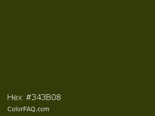 Hex #343b08 Color is a very dark yellow color and the nearest color is Waiouru #363c0d. Hex code #343b08 and RGB value is rgb(52,59,8). In RGB color space, this color is composed of 20% red, 23% green, 3% blue, In CMYK color space, this color is composed of 12% cyan, 0% magenta, 86% yellow , 77% black , In HSL color space, this color has a hue angle of 68° , 76% saturation and 13% lightness.