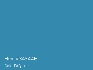 Hex #348aae Color is a normal blue color and the nearest color is Boston Blue #3b91b4. Hex code #348aae and RGB value is rgb(52,138,174). In RGB color space, this color is composed of 20% red, 54% green, 68% blue, In CMYK color space, this color is composed of 70% cyan, 21% magenta, 0% yellow , 32% black , In HSL color space, this color has a hue angle of 198° , 54% saturation and 44% lightness.