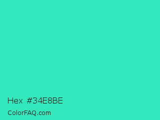 Hex #34e8be Color is a normal cyan color and the nearest color is Turquoise PWG #30d5c8. Hex code #34e8be and RGB value is rgb(52,232,190). In RGB color space, this color is composed of 20% red, 91% green, 75% blue, In CMYK color space, this color is composed of 78% cyan, 0% magenta, 18% yellow , 9% black , In HSL color space, this color has a hue angle of 166° , 80% saturation and 56% lightness.