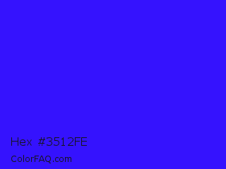 Hex #3512fe Color is a normal indigo color and the nearest color is Electric Ultramarine #3f00ff. Hex code #3512fe and RGB value is rgb(53,18,254). In RGB color space, this color is composed of 21% red, 7% green, 100% blue, In CMYK color space, this color is composed of 79% cyan, 93% magenta, 0% yellow , 0% black , In HSL color space, this color has a hue angle of 249° , 99% saturation and 53% lightness.