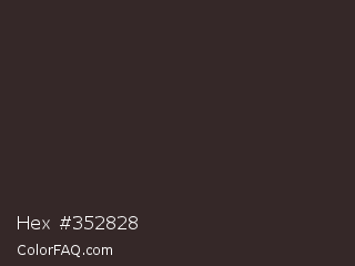 Hex #352828 Color is a very dark red color and the nearest color is Thunder #33292f. Hex code #352828 and RGB value is rgb(53,40,40). In RGB color space, this color is composed of 21% red, 16% green, 16% blue, In CMYK color space, this color is composed of 0% cyan, 25% magenta, 25% yellow , 79% black , In HSL color space, this color has a hue angle of 0° , 14% saturation and 18% lightness.