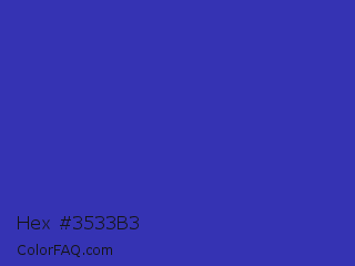 Hex #3533b3 Color is a normal indigo color and the nearest color is Governor Bay #2f3cb3. Hex code #3533b3 and RGB value is rgb(53,51,179). In RGB color space, this color is composed of 21% red, 20% green, 70% blue, In CMYK color space, this color is composed of 70% cyan, 72% magenta, 0% yellow , 30% black , In HSL color space, this color has a hue angle of 241° , 56% saturation and 45% lightness.
