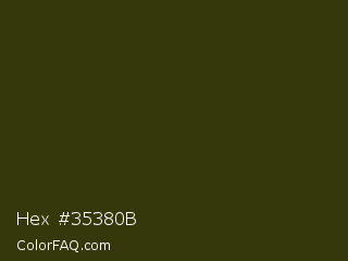 Hex #35380b Color is a very dark yellow color and the nearest color is Waiouru #363c0d. Hex code #35380b and RGB value is rgb(53,56,11). In RGB color space, this color is composed of 21% red, 22% green, 4% blue, In CMYK color space, this color is composed of 5% cyan, 0% magenta, 80% yellow , 78% black , In HSL color space, this color has a hue angle of 64° , 67% saturation and 13% lightness.