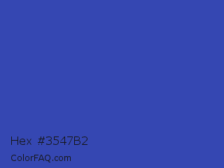 Hex #3547b2 Color is a normal blue color and the nearest color is Violet Blue #324ab2. Hex code #3547b2 and RGB value is rgb(53,71,178). In RGB color space, this color is composed of 21% red, 28% green, 70% blue, In CMYK color space, this color is composed of 70% cyan, 60% magenta, 0% yellow , 30% black , In HSL color space, this color has a hue angle of 231° , 54% saturation and 45% lightness.