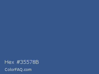 Hex #35578b Color is a normal blue color and the nearest color is Chambray #354e8c. Hex code #35578b and RGB value is rgb(53,87,139). In RGB color space, this color is composed of 21% red, 34% green, 55% blue, In CMYK color space, this color is composed of 62% cyan, 37% magenta, 0% yellow , 45% black , In HSL color space, this color has a hue angle of 216° , 45% saturation and 38% lightness.