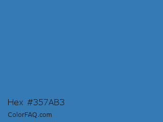 Hex #357ab3 Color is a normal blue color and the nearest color is Steel Blue #4682b4. Hex code #357ab3 and RGB value is rgb(53,122,179). In RGB color space, this color is composed of 21% red, 48% green, 70% blue, In CMYK color space, this color is composed of 70% cyan, 32% magenta, 0% yellow , 30% black , In HSL color space, this color has a hue angle of 207° , 54% saturation and 45% lightness.