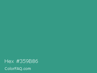Hex #359b86 Color is a normal cyan color and the nearest color is Zomp #39a78e. Hex code #359b86 and RGB value is rgb(53,155,134). In RGB color space, this color is composed of 21% red, 61% green, 53% blue, In CMYK color space, this color is composed of 66% cyan, 0% magenta, 14% yellow , 39% black , In HSL color space, this color has a hue angle of 168° , 49% saturation and 41% lightness.