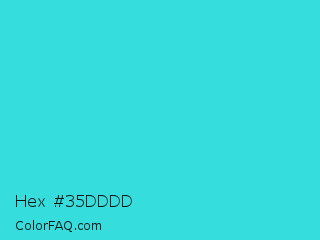 Hex #35dddd Color is a normal cyan color and the nearest color is Turquoise #40e0d0. Hex code #35dddd and RGB value is rgb(53,221,221). In RGB color space, this color is composed of 21% red, 87% green, 87% blue, In CMYK color space, this color is composed of 76% cyan, 0% magenta, 0% yellow , 13% black , In HSL color space, this color has a hue angle of 180° , 71% saturation and 54% lightness.