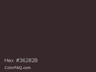Hex #36282b Color is a very dark red color and the nearest color is Thunder #33292f. Hex code #36282b and RGB value is rgb(54,40,43). In RGB color space, this color is composed of 21% red, 16% green, 17% blue, In CMYK color space, this color is composed of 0% cyan, 26% magenta, 20% yellow , 79% black , In HSL color space, this color has a hue angle of 347° , 15% saturation and 18% lightness.