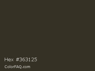 Hex #363125 Color is a very dark orange color and the nearest color is Birch #373021. Hex code #363125 and RGB value is rgb(54,49,37). In RGB color space, this color is composed of 21% red, 19% green, 15% blue, In CMYK color space, this color is composed of 0% cyan, 9% magenta, 31% yellow , 79% black , In HSL color space, this color has a hue angle of 42° , 19% saturation and 18% lightness.