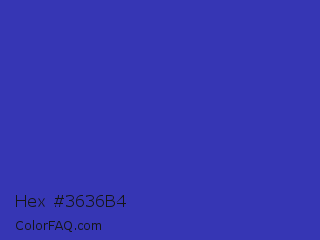 Hex #3636b4 Color is a normal blue color and the nearest color is Governor Bay #2f3cb3. Hex code #3636b4 and RGB value is rgb(54,54,180). In RGB color space, this color is composed of 21% red, 21% green, 71% blue, In CMYK color space, this color is composed of 70% cyan, 70% magenta, 0% yellow , 29% black , In HSL color space, this color has a hue angle of 240° , 54% saturation and 46% lightness.