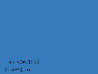 Hex #367bbb Color is a normal blue color and the nearest color is Cyan Blue Azure #4682bf. Hex code #367bbb and RGB value is rgb(54,123,187). In RGB color space, this color is composed of 21% red, 48% green, 73% blue, In CMYK color space, this color is composed of 71% cyan, 34% magenta, 0% yellow , 27% black , In HSL color space, this color has a hue angle of 209° , 55% saturation and 47% lightness.