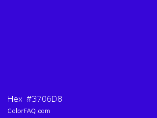 Hex #3706d8 Color is a normal indigo color and the nearest color is Interdimensional Blue #360ccc. Hex code #3706d8 and RGB value is rgb(55,6,216). In RGB color space, this color is composed of 22% red, 2% green, 85% blue, In CMYK color space, this color is composed of 75% cyan, 97% magenta, 0% yellow , 15% black , In HSL color space, this color has a hue angle of 254° , 95% saturation and 44% lightness.