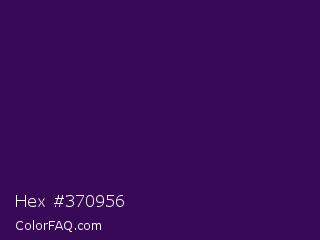 Hex #370956 Color is a very dark purple color and the nearest color is Jagger #350e57. Hex code #370956 and RGB value is rgb(55,9,86). In RGB color space, this color is composed of 22% red, 4% green, 34% blue, In CMYK color space, this color is composed of 36% cyan, 90% magenta, 0% yellow , 66% black , In HSL color space, this color has a hue angle of 276° , 81% saturation and 19% lightness.