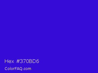 Hex #370bd6 Color is a normal indigo color and the nearest color is Interdimensional Blue #360ccc. Hex code #370bd6 and RGB value is rgb(55,11,214). In RGB color space, this color is composed of 22% red, 4% green, 84% blue, In CMYK color space, this color is composed of 74% cyan, 95% magenta, 0% yellow , 16% black , In HSL color space, this color has a hue angle of 253° , 90% saturation and 44% lightness.
