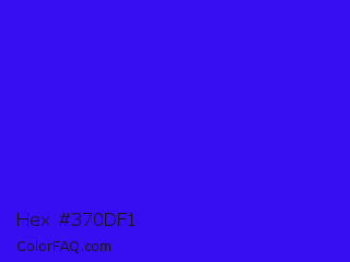 Hex #370df1 Color is a normal indigo color and the nearest color is Electric Ultramarine #3f00ff. Hex code #370df1 and RGB value is rgb(55,13,241). In RGB color space, this color is composed of 22% red, 5% green, 95% blue, In CMYK color space, this color is composed of 77% cyan, 95% magenta, 0% yellow , 5% black , In HSL color space, this color has a hue angle of 251° , 90% saturation and 50% lightness.