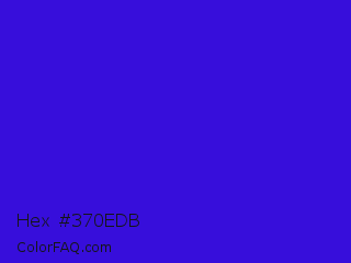 Hex #370edb Color is a normal indigo color and the nearest color is Interdimensional Blue #360ccc. Hex code #370edb and RGB value is rgb(55,14,219). In RGB color space, this color is composed of 22% red, 5% green, 86% blue, In CMYK color space, this color is composed of 75% cyan, 94% magenta, 0% yellow , 14% black , In HSL color space, this color has a hue angle of 252° , 88% saturation and 46% lightness.