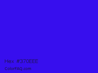 Hex #370eee Color is a normal indigo color and the nearest color is Electric Ultramarine #3f00ff. Hex code #370eee and RGB value is rgb(55,14,238). In RGB color space, this color is composed of 22% red, 5% green, 93% blue, In CMYK color space, this color is composed of 77% cyan, 94% magenta, 0% yellow , 7% black , In HSL color space, this color has a hue angle of 251° , 89% saturation and 49% lightness.
