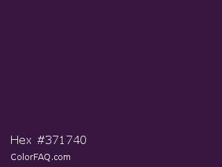 Hex #371740 Color is a very dark purple color and the nearest color is Valentino #350e42. Hex code #371740 and RGB value is rgb(55,23,64). In RGB color space, this color is composed of 22% red, 9% green, 25% blue, In CMYK color space, this color is composed of 14% cyan, 64% magenta, 0% yellow , 75% black , In HSL color space, this color has a hue angle of 287° , 47% saturation and 17% lightness.