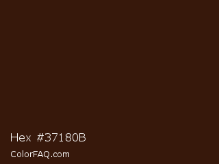 Hex #37180b Color is a very dark orange color and the nearest color is Clinker #371d09. Hex code #37180b and RGB value is rgb(55,24,11). In RGB color space, this color is composed of 22% red, 9% green, 4% blue, In CMYK color space, this color is composed of 0% cyan, 56% magenta, 80% yellow , 78% black , In HSL color space, this color has a hue angle of 18° , 67% saturation and 13% lightness.