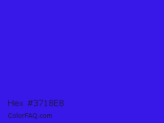 Hex #3718e8 Color is a normal indigo color and the nearest color is Bluebonnet #1c1cf0. Hex code #3718e8 and RGB value is rgb(55,24,232). In RGB color space, this color is composed of 22% red, 9% green, 91% blue, In CMYK color space, this color is composed of 76% cyan, 90% magenta, 0% yellow , 9% black , In HSL color space, this color has a hue angle of 249° , 82% saturation and 50% lightness.