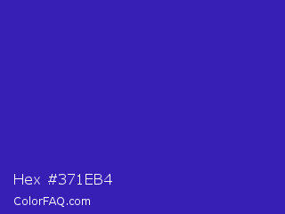 Hex #371eb4 Color is a normal indigo color and the nearest color is Interdimensional Blue #360ccc. Hex code #371eb4 and RGB value is rgb(55,30,180). In RGB color space, this color is composed of 22% red, 12% green, 71% blue, In CMYK color space, this color is composed of 69% cyan, 83% magenta, 0% yellow , 29% black , In HSL color space, this color has a hue angle of 250° , 71% saturation and 41% lightness.