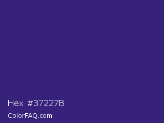 Hex #37227b Color is a normal indigo color and the nearest color is Meteorite #3c1f76. Hex code #37227b and RGB value is rgb(55,34,123). In RGB color space, this color is composed of 22% red, 13% green, 48% blue, In CMYK color space, this color is composed of 55% cyan, 72% magenta, 0% yellow , 52% black , In HSL color space, this color has a hue angle of 254° , 57% saturation and 31% lightness.