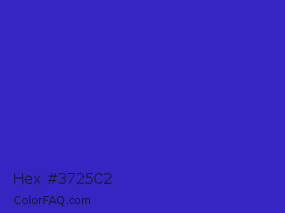 Hex #3725c2 Color is a normal indigo color and the nearest color is Interdimensional Blue #360ccc. Hex code #3725c2 and RGB value is rgb(55,37,194). In RGB color space, this color is composed of 22% red, 15% green, 76% blue, In CMYK color space, this color is composed of 72% cyan, 81% magenta, 0% yellow , 24% black , In HSL color space, this color has a hue angle of 247° , 68% saturation and 45% lightness.