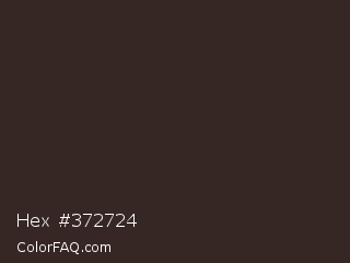 Hex #372724 Color is a very dark red color and the nearest color is Treehouse #3b2820. Hex code #372724 and RGB value is rgb(55,39,36). In RGB color space, this color is composed of 22% red, 15% green, 14% blue, In CMYK color space, this color is composed of 0% cyan, 29% magenta, 35% yellow , 78% black , In HSL color space, this color has a hue angle of 9° , 21% saturation and 18% lightness.