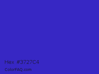 Hex #3727c4 Color is a normal indigo color and the nearest color is Interdimensional Blue #360ccc. Hex code #3727c4 and RGB value is rgb(55,39,196). In RGB color space, this color is composed of 22% red, 15% green, 77% blue, In CMYK color space, this color is composed of 72% cyan, 80% magenta, 0% yellow , 23% black , In HSL color space, this color has a hue angle of 246° , 67% saturation and 46% lightness.