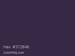 Hex #372846 Color is a very dark violet color and the nearest color is Martinique #363050. Hex code #372846 and RGB value is rgb(55,40,70). In RGB color space, this color is composed of 22% red, 16% green, 27% blue, In CMYK color space, this color is composed of 21% cyan, 43% magenta, 0% yellow , 73% black , In HSL color space, this color has a hue angle of 270° , 27% saturation and 22% lightness.