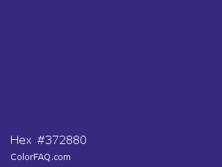 Hex #372880 Color is a normal indigo color and the nearest color is Minsk #3f307f. Hex code #372880 and RGB value is rgb(55,40,128). In RGB color space, this color is composed of 22% red, 16% green, 50% blue, In CMYK color space, this color is composed of 57% cyan, 69% magenta, 0% yellow , 50% black , In HSL color space, this color has a hue angle of 250° , 52% saturation and 33% lightness.