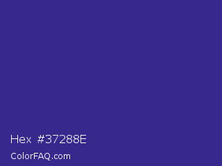 Hex #37288e Color is a normal indigo color and the nearest color is Cosmic Cobalt #2e2d88. Hex code #37288e and RGB value is rgb(55,40,142). In RGB color space, this color is composed of 22% red, 16% green, 56% blue, In CMYK color space, this color is composed of 61% cyan, 72% magenta, 0% yellow , 44% black , In HSL color space, this color has a hue angle of 249° , 56% saturation and 36% lightness.