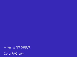Hex #3728b7 Color is a normal indigo color and the nearest color is Governor Bay #2f3cb3. Hex code #3728b7 and RGB value is rgb(55,40,183). In RGB color space, this color is composed of 22% red, 16% green, 72% blue, In CMYK color space, this color is composed of 70% cyan, 78% magenta, 0% yellow , 28% black , In HSL color space, this color has a hue angle of 246° , 64% saturation and 44% lightness.