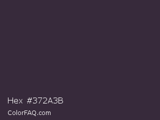 Hex #372a3b Color is a very dark purple color and the nearest color is Blackcurrant #32293a. Hex code #372a3b and RGB value is rgb(55,42,59). In RGB color space, this color is composed of 22% red, 16% green, 23% blue, In CMYK color space, this color is composed of 7% cyan, 29% magenta, 0% yellow , 77% black , In HSL color space, this color has a hue angle of 286° , 17% saturation and 20% lightness.