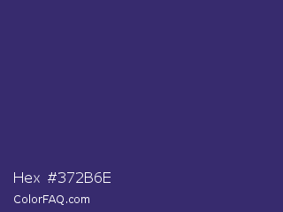 Hex #372b6e Color is a dark indigo color and the nearest color is Jacarta #3a2a6a. Hex code #372b6e and RGB value is rgb(55,43,110). In RGB color space, this color is composed of 22% red, 17% green, 43% blue, In CMYK color space, this color is composed of 50% cyan, 61% magenta, 0% yellow , 57% black , In HSL color space, this color has a hue angle of 251° , 44% saturation and 30% lightness.
