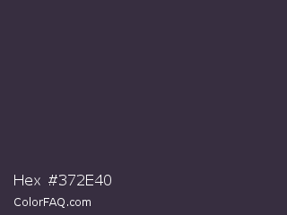 Hex #372e40 Color is a very dark violet color and the nearest color is Tuna #353542. Hex code #372e40 and RGB value is rgb(55,46,64). In RGB color space, this color is composed of 22% red, 18% green, 25% blue, In CMYK color space, this color is composed of 14% cyan, 28% magenta, 0% yellow , 75% black , In HSL color space, this color has a hue angle of 270° , 16% saturation and 22% lightness.