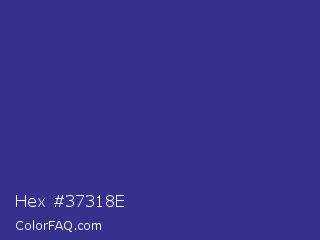 Hex #37318e Color is a normal indigo color and the nearest color is Cosmic Cobalt #2e2d88. Hex code #37318e and RGB value is rgb(55,49,142). In RGB color space, this color is composed of 22% red, 19% green, 56% blue, In CMYK color space, this color is composed of 61% cyan, 65% magenta, 0% yellow , 44% black , In HSL color space, this color has a hue angle of 244° , 49% saturation and 37% lightness.